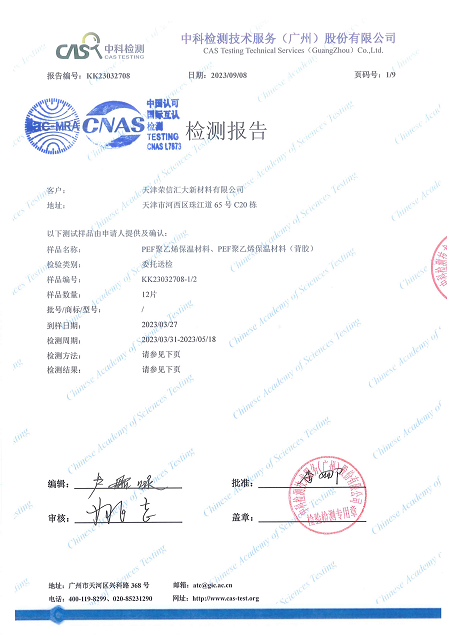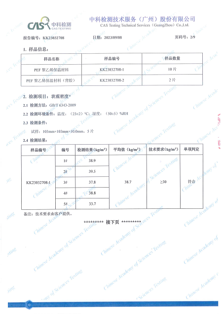 中科检测技术服务(广州)股份有限公司 PEF 聚乙烯保温材料 检测报告