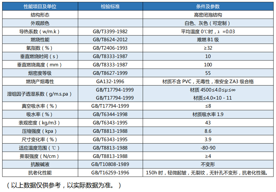 主要以聚乙烯为主要原料,配合阻燃剂、发泡剂、促进剂等助剂,经密炼、开炼、挤出、发泡、冷却、切裁而成,具有细微的独立闭孔结构,保温性能好、压缩回弹性佳、抗水汽渗透能力强。
